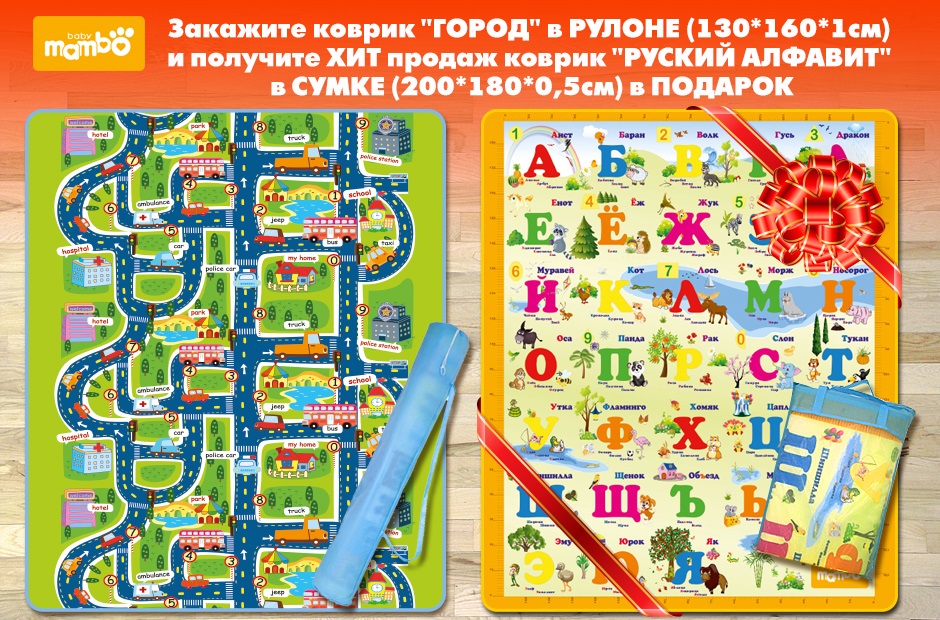 Закажи игровой коврик MamboBaby Город (130х160х1см) 60761 и получи в подарок ХИТ ПРОДАЖ: Игровой коврик MamboBaby Русский Алфавит (200х180х0,5см) 004ТМ!!!*