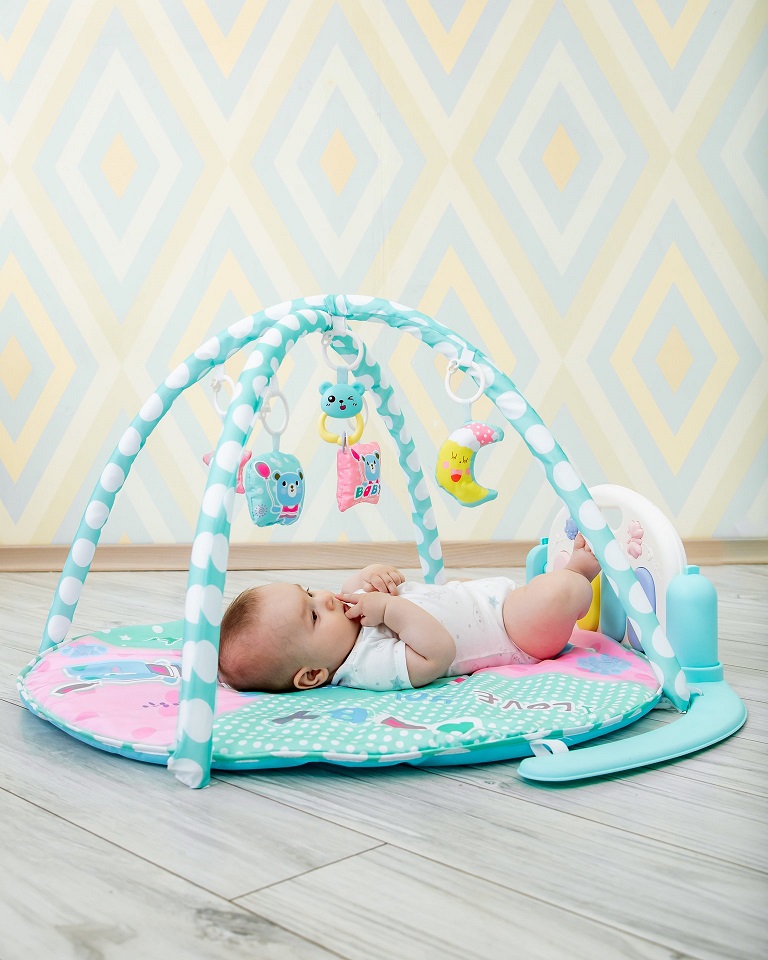 Уже с трех месяцев ребенок начинает различать цвета и формы, разноцветные игрушки привлекут его внимание. Чтобы малыш не заскучал, игрушки нужно иногда менять местами. Также дугу с погремушками можно полностью снять. Поверхность ковриков AmaroBaby легко чистится, а при необходимости его можно даже постирать, что несомненно понравится многим мамам.