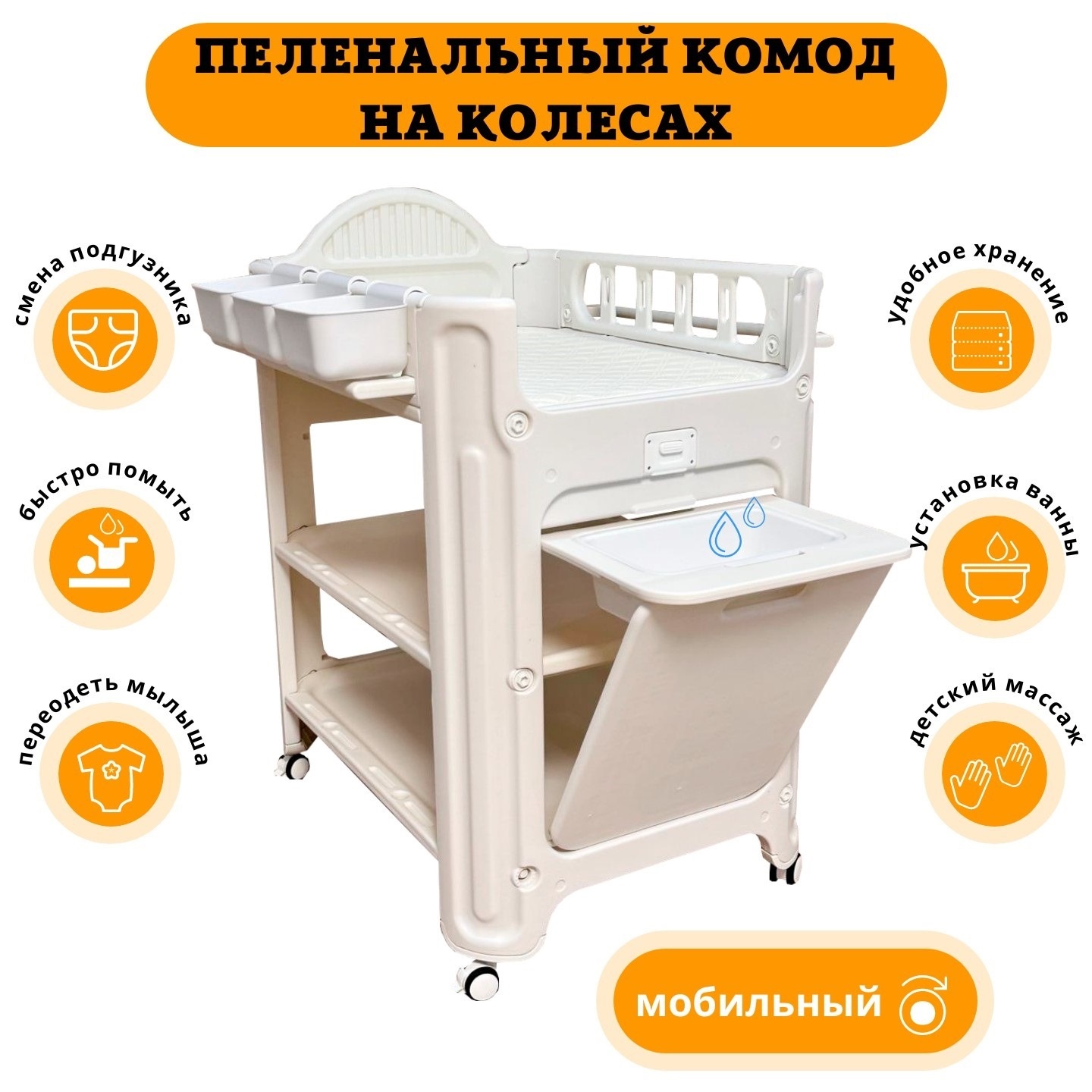 Детский пеленальный комод на колесах Floopsi. Пеленальный столик для новорожденных №1
