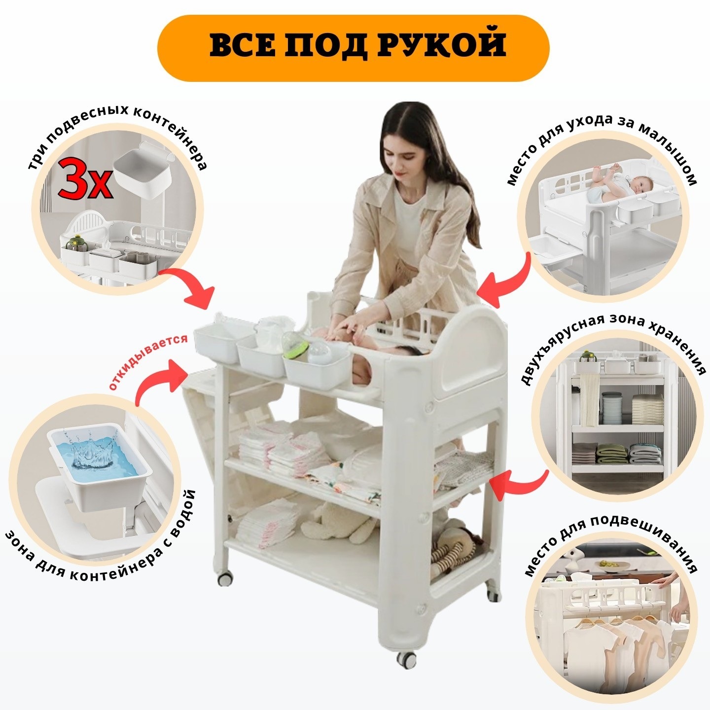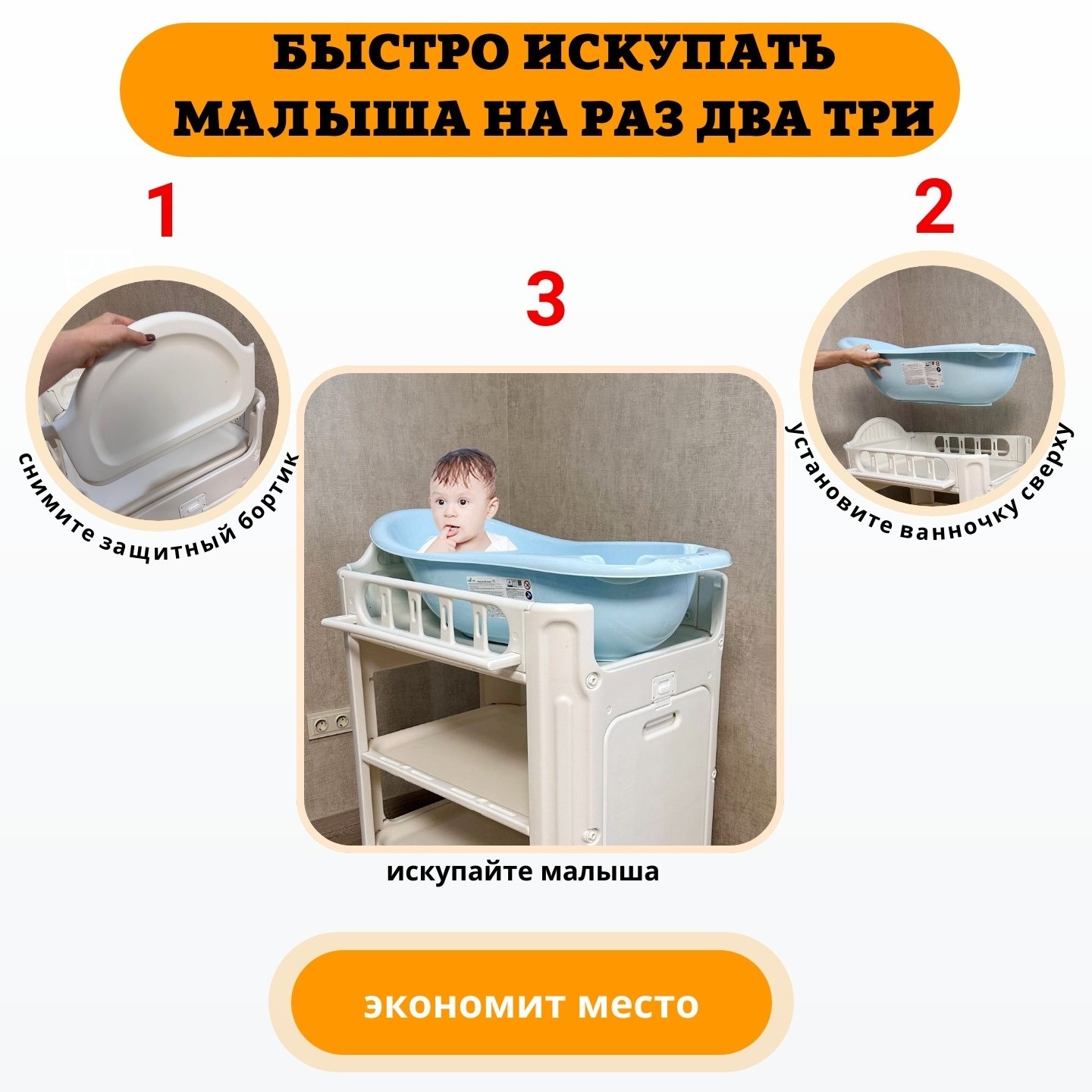 Возможность установки на пеленальную доску ванночки для купания (в комплект не входит)