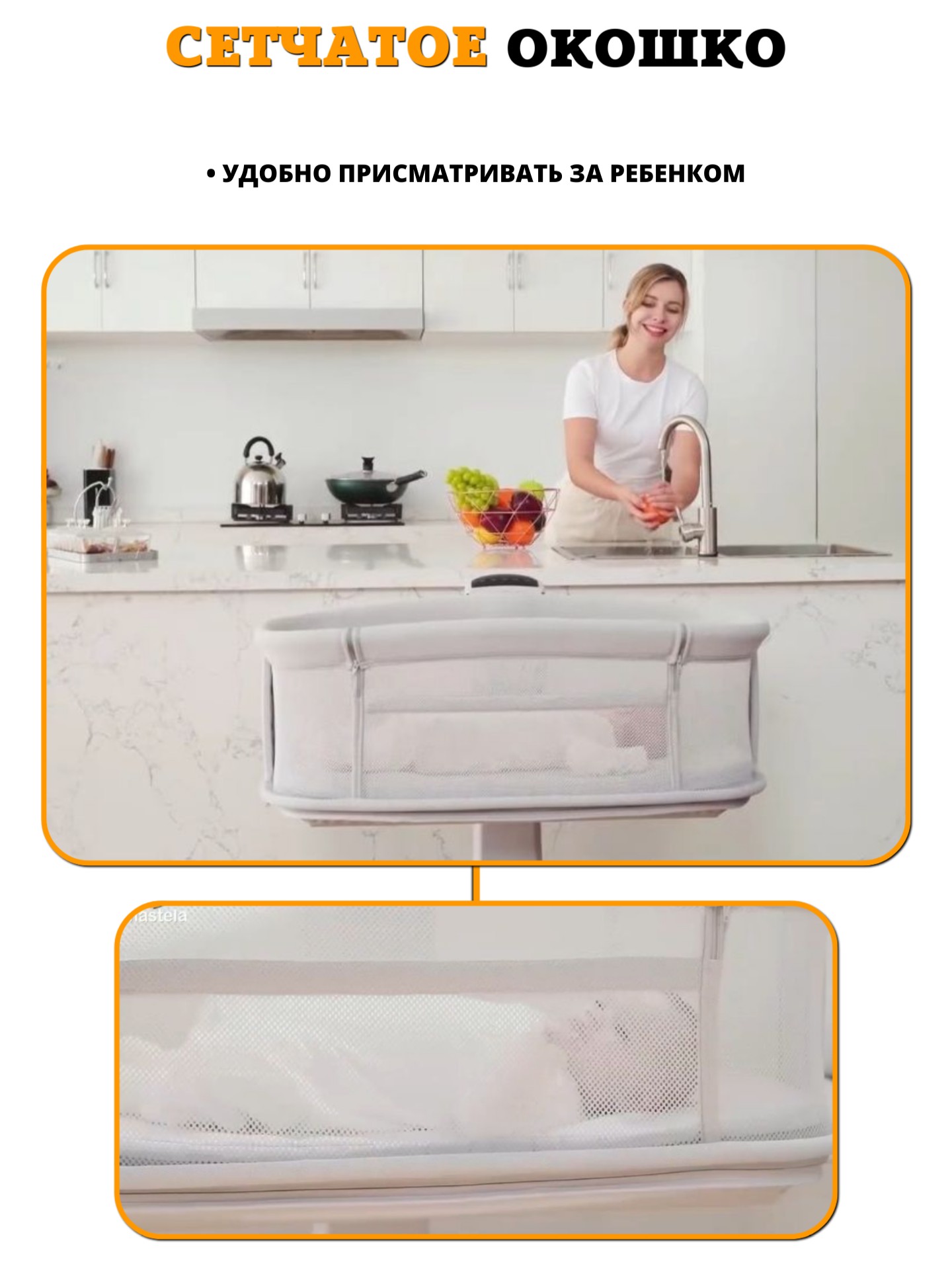 И, наконец, благодаря своей конструкции 4 в 1, колыбель легко трансформируется в другие полезные предметы мебели. Например, ее можно использовать как приставную кроватку, чтобы малыш всегда был рядом с мамой. Или же, когда ребенок подрастет, колыбель можно переделать в манеж для игр.