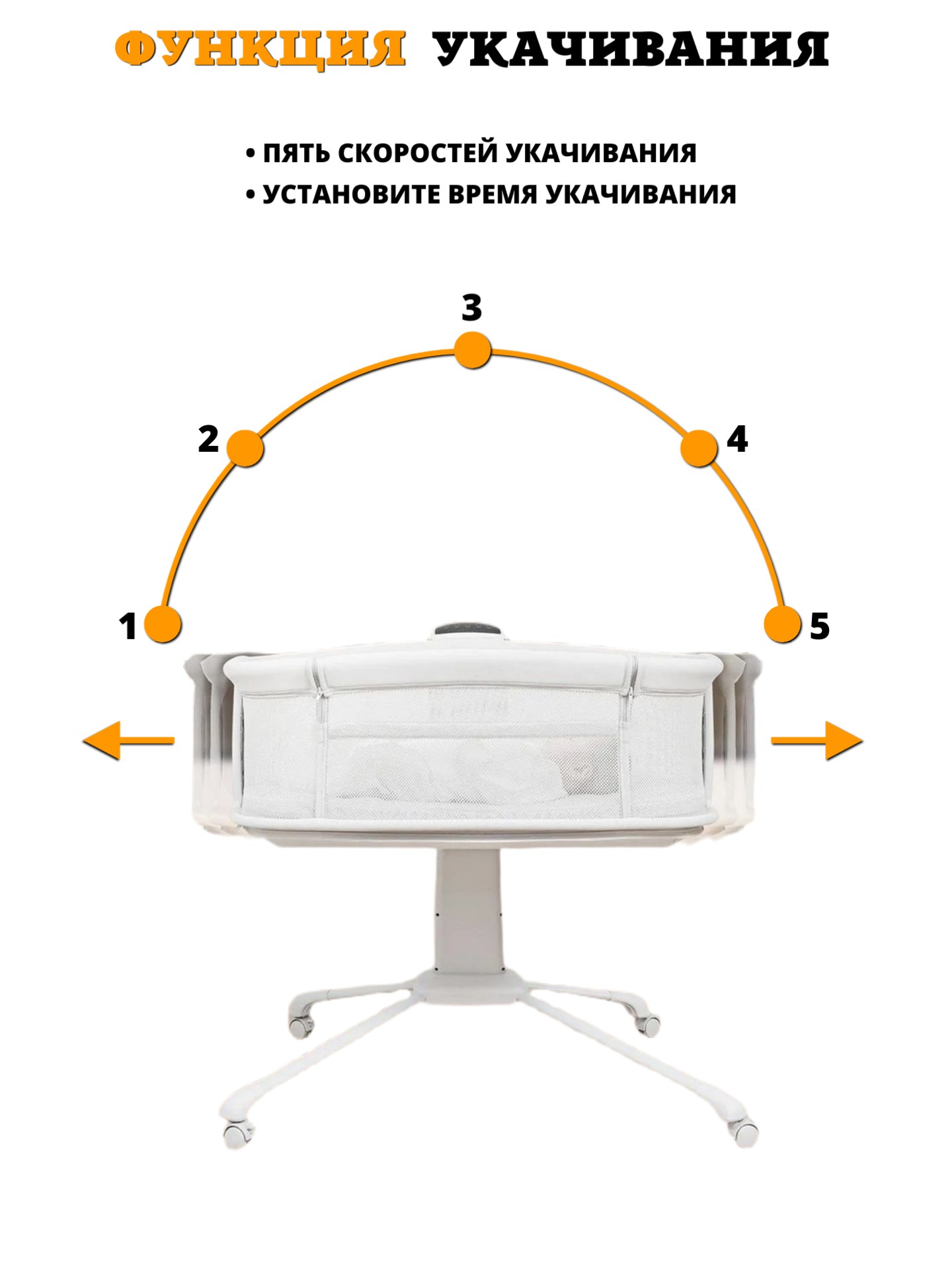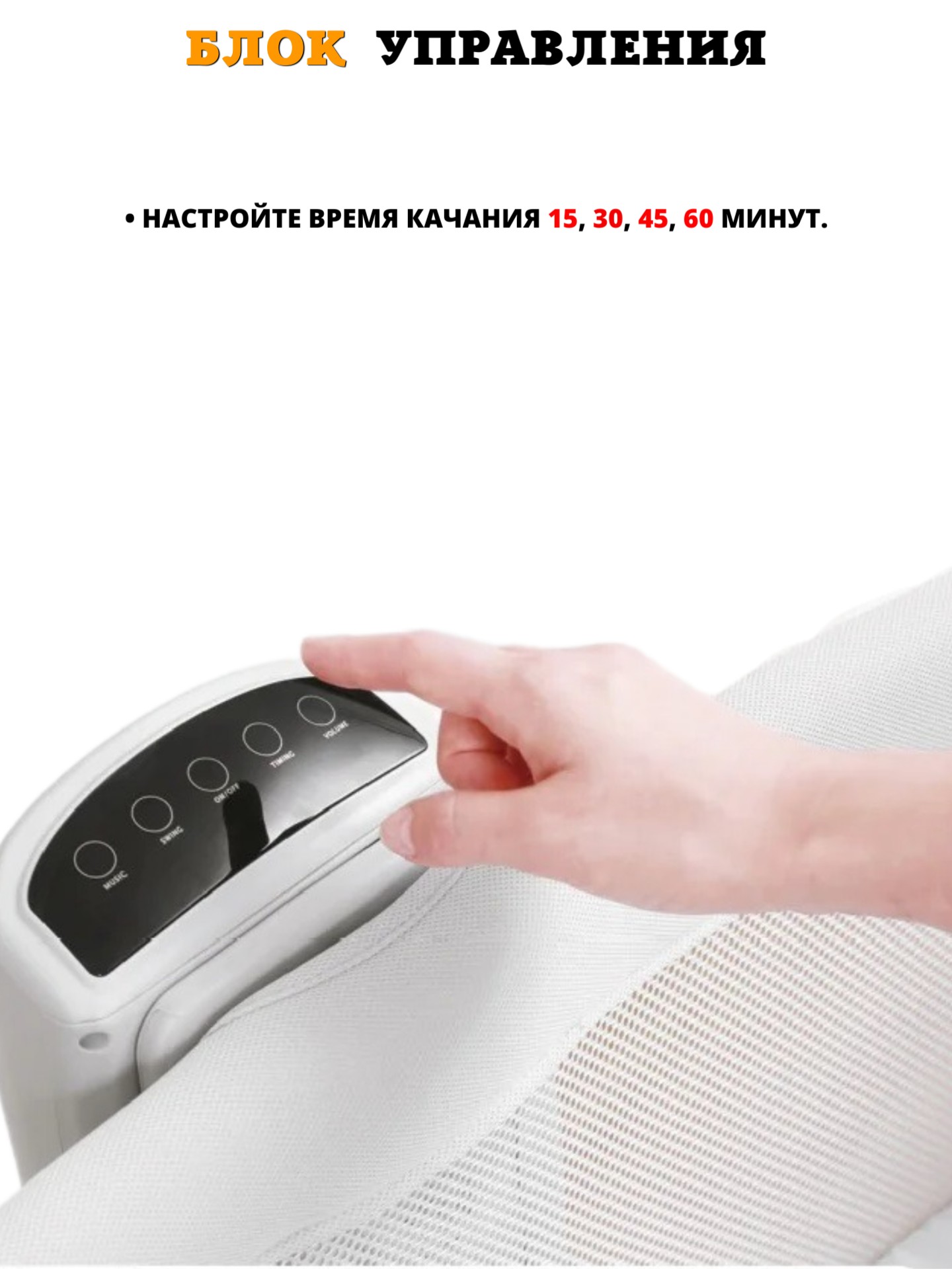 • Режим люльки: Этот режим идеально подходит для новорожденных, имитирует традиционную качающуюся люльку, предлагая мягкие качели, которые помогают облегчить сон вашего ребенка.