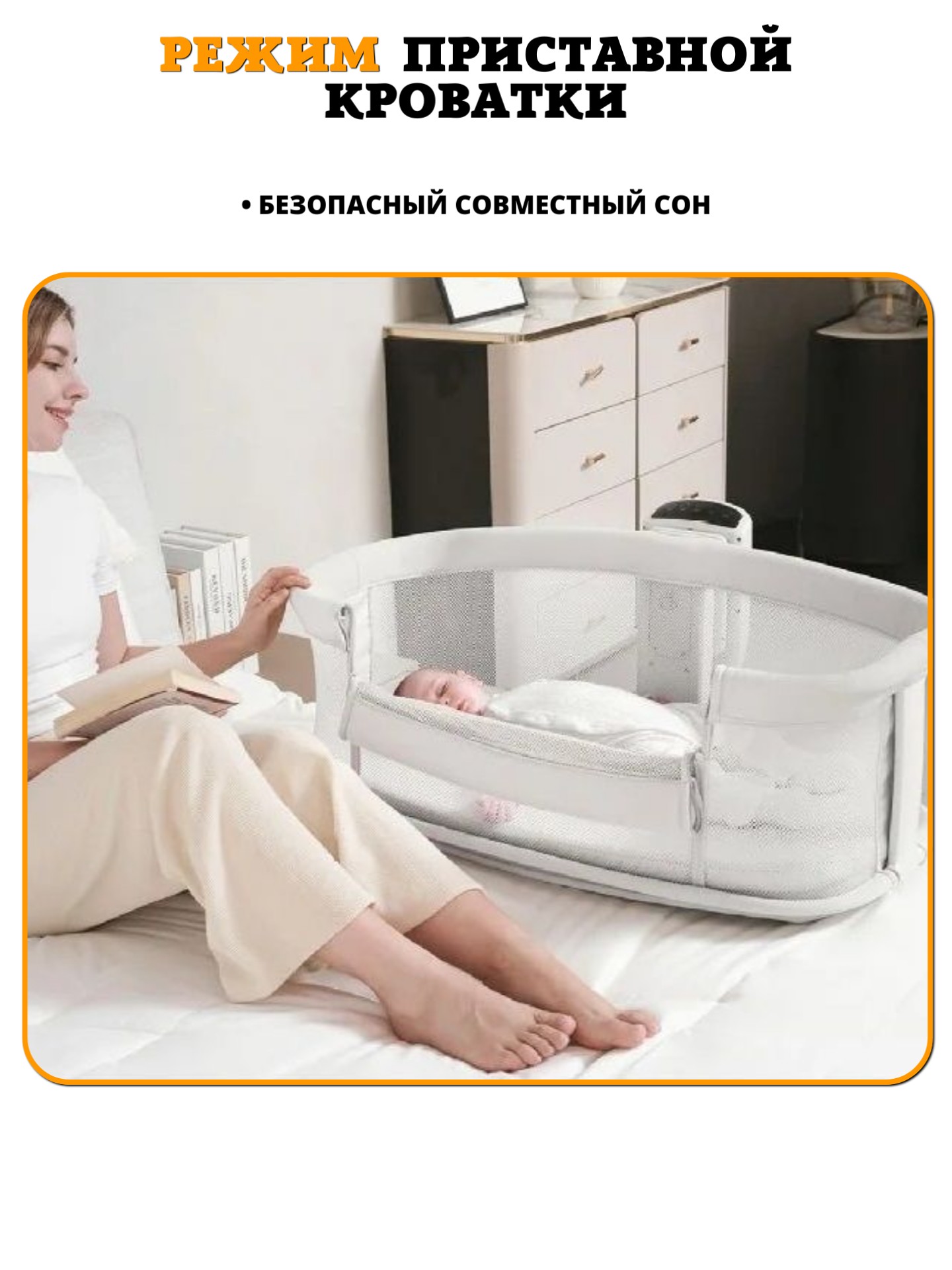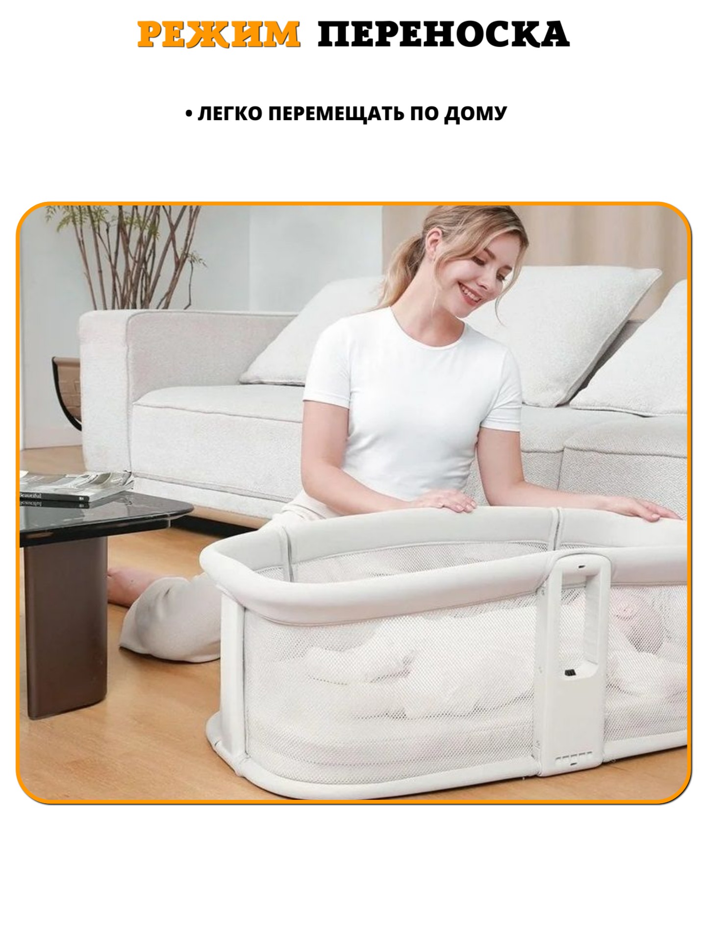 • Режим совместного сна: Эта инновационная конструкция «кровать в кровати» позволяет держать ребенка под рукой, обеспечивая душевное спокойствие и одновременно способствуя сближению во время сна.