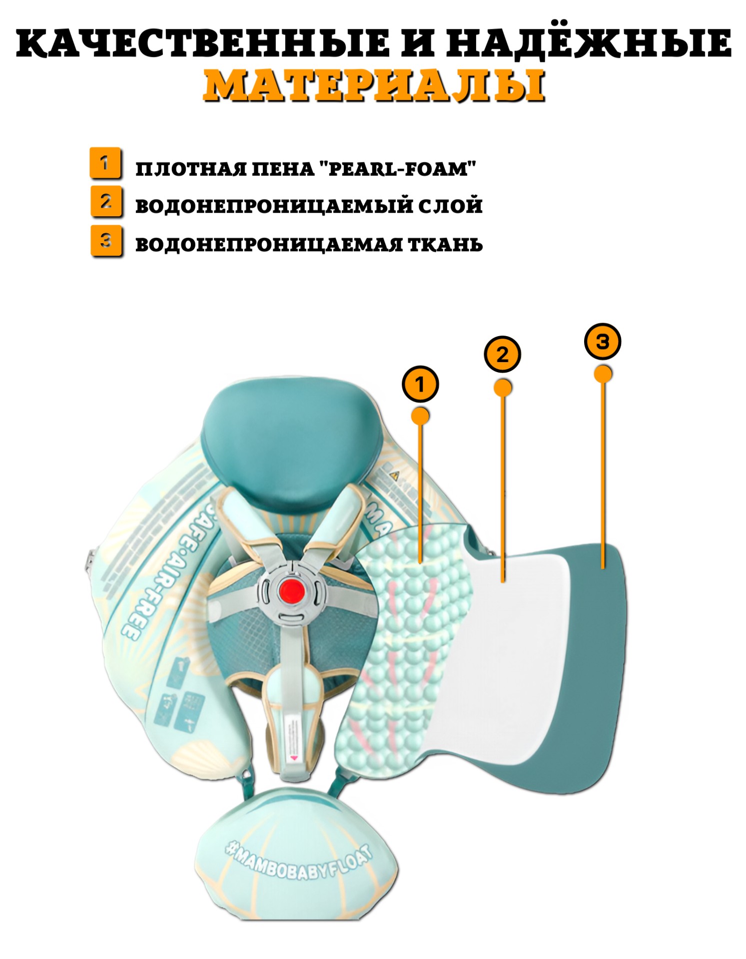 Круг для плаванья обеспечит наивысшую степень безопасности, за счет безвоздушной камеры, благодаря специальной пене Pearl-Foam