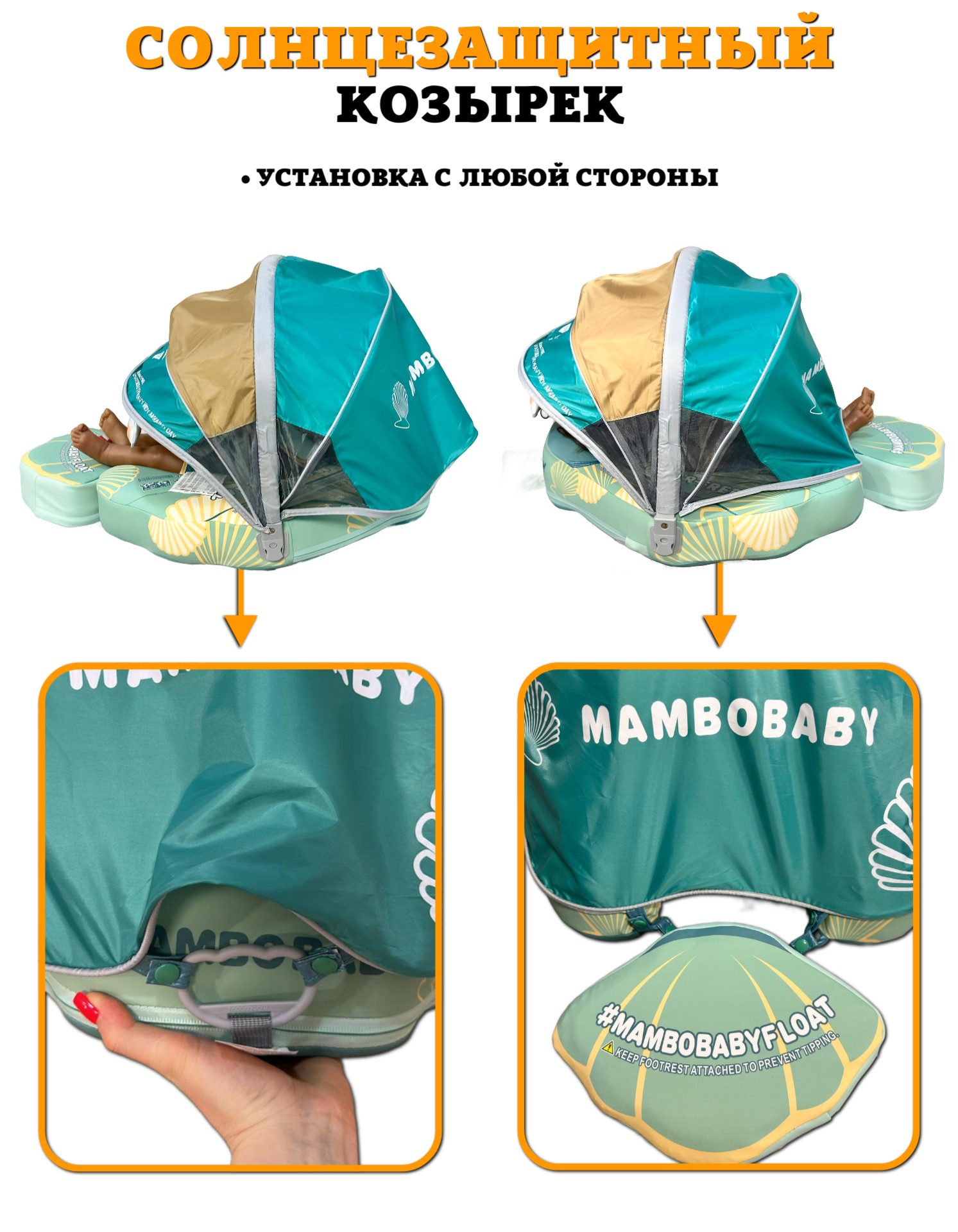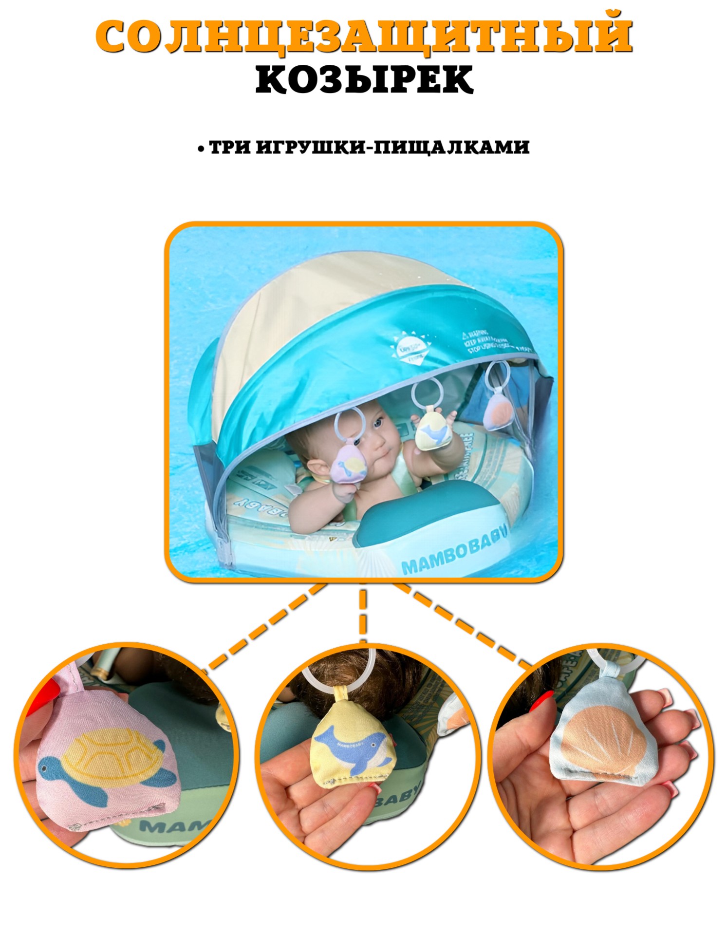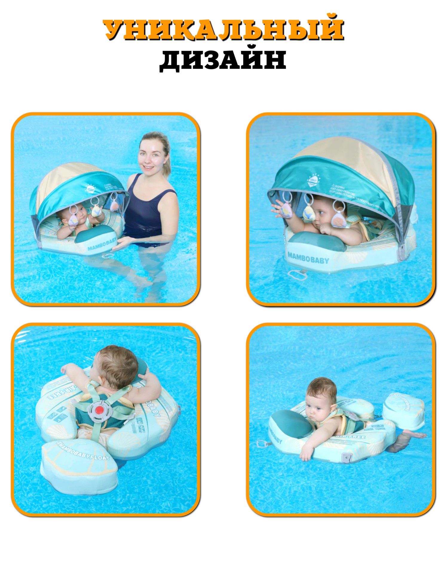 Круг для плавания детский с трусами и навесом Mambobaby 3-24 месяца. Не надувной круг для плавания для малышей
