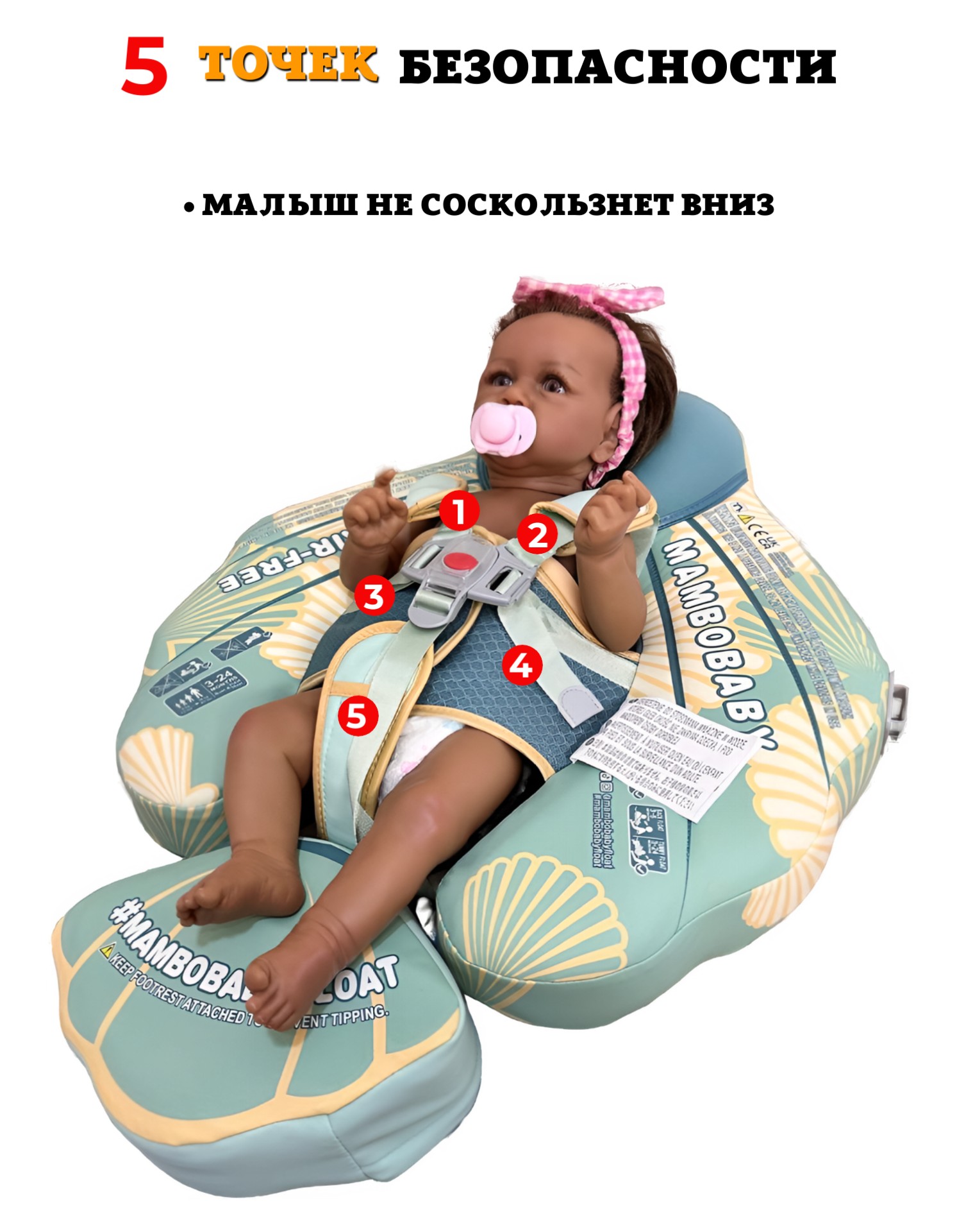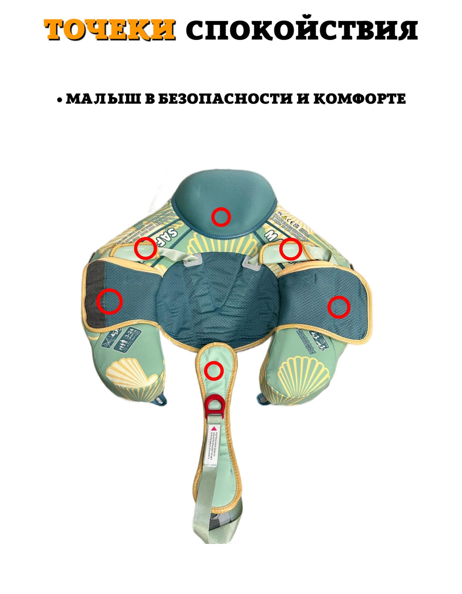 Жилет с трусами и 5-ти точечными ремнями безопасности, не даст малышу выскользнуть из круга.