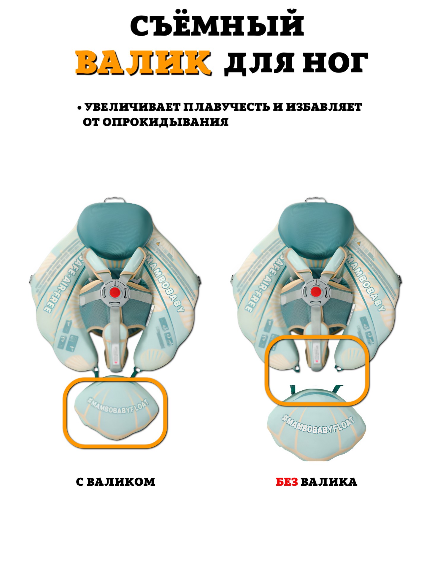За счет специального валика для ног круг увеличивает свою плавучесть в глубокой воде и предотвращает опрокидывания.