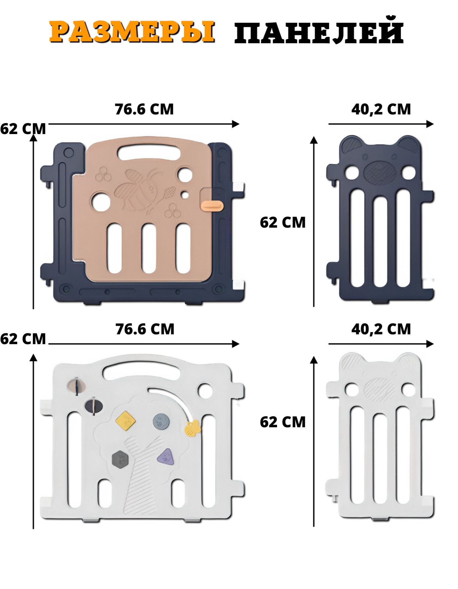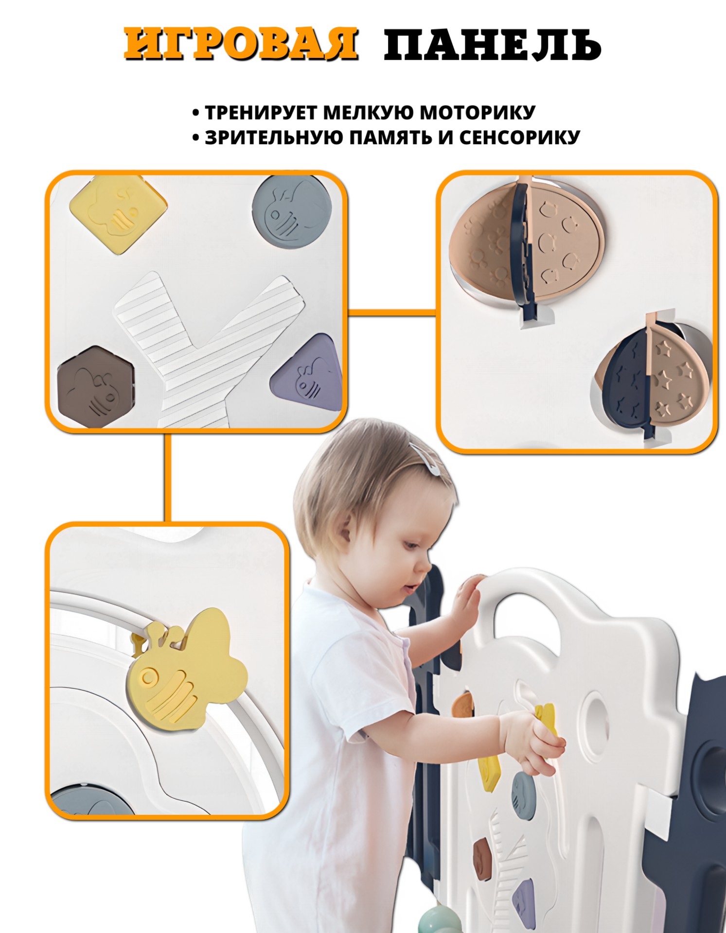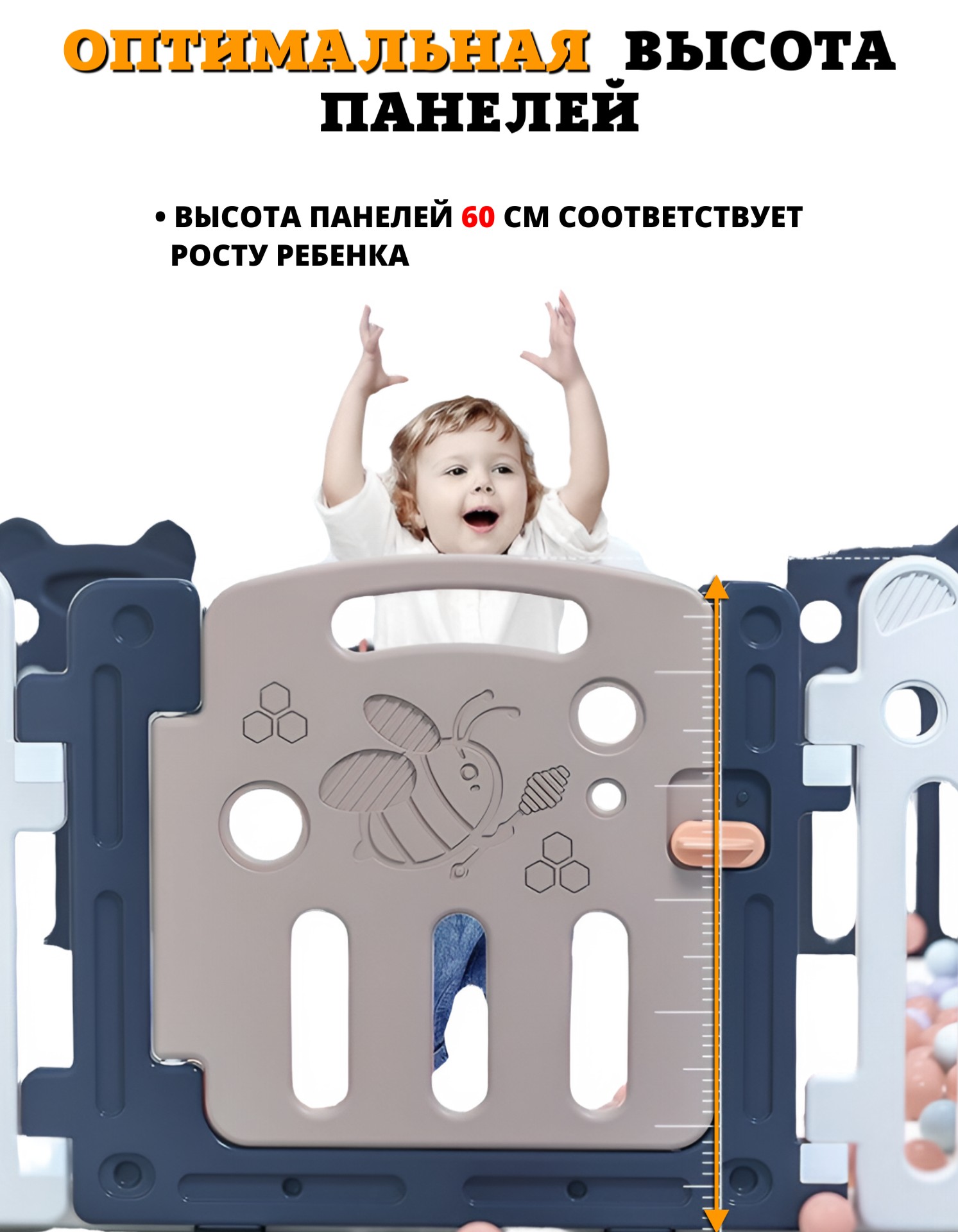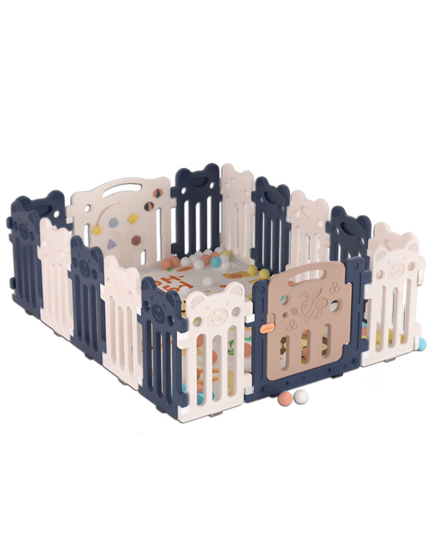 Детский манеж-ограждение Little Bee с игровой панелью и дверцей состоит из 18 секций. Игровой комплекс прочный и устойчивый, легко трансформируется, собирается и разбирается. Не требует специального инструмента для сборки.