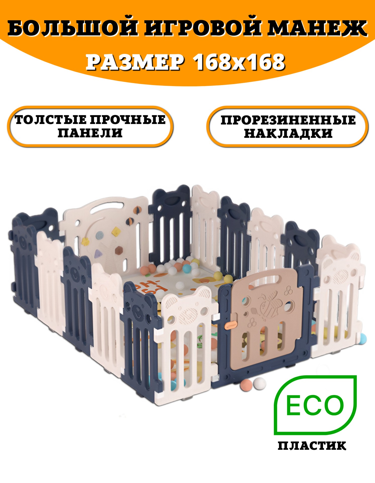 ·         Размер манежа (ДхШхВ): 168x168x60см.