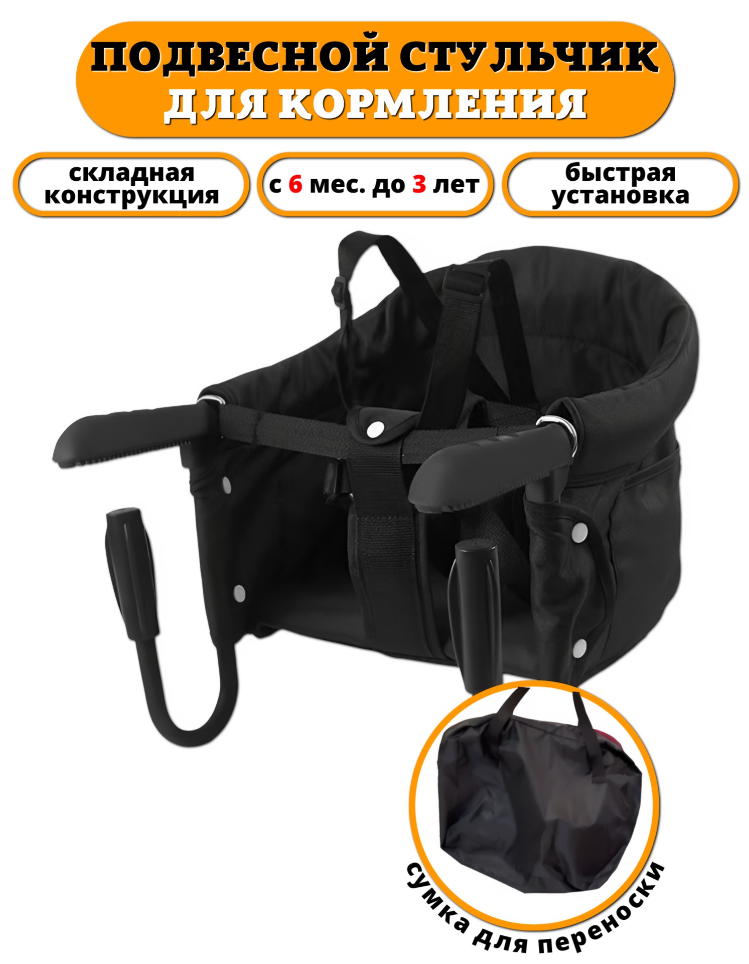 Навесной стул для кормления Floopsi black по доступной цене 2900 руб. Все стульчики гарантированно превосходного качества и многофункциональны. Навесной стул для кормления Floopsi black в интернет-магазине Antonchik.ru с доставкой по Москве и России.