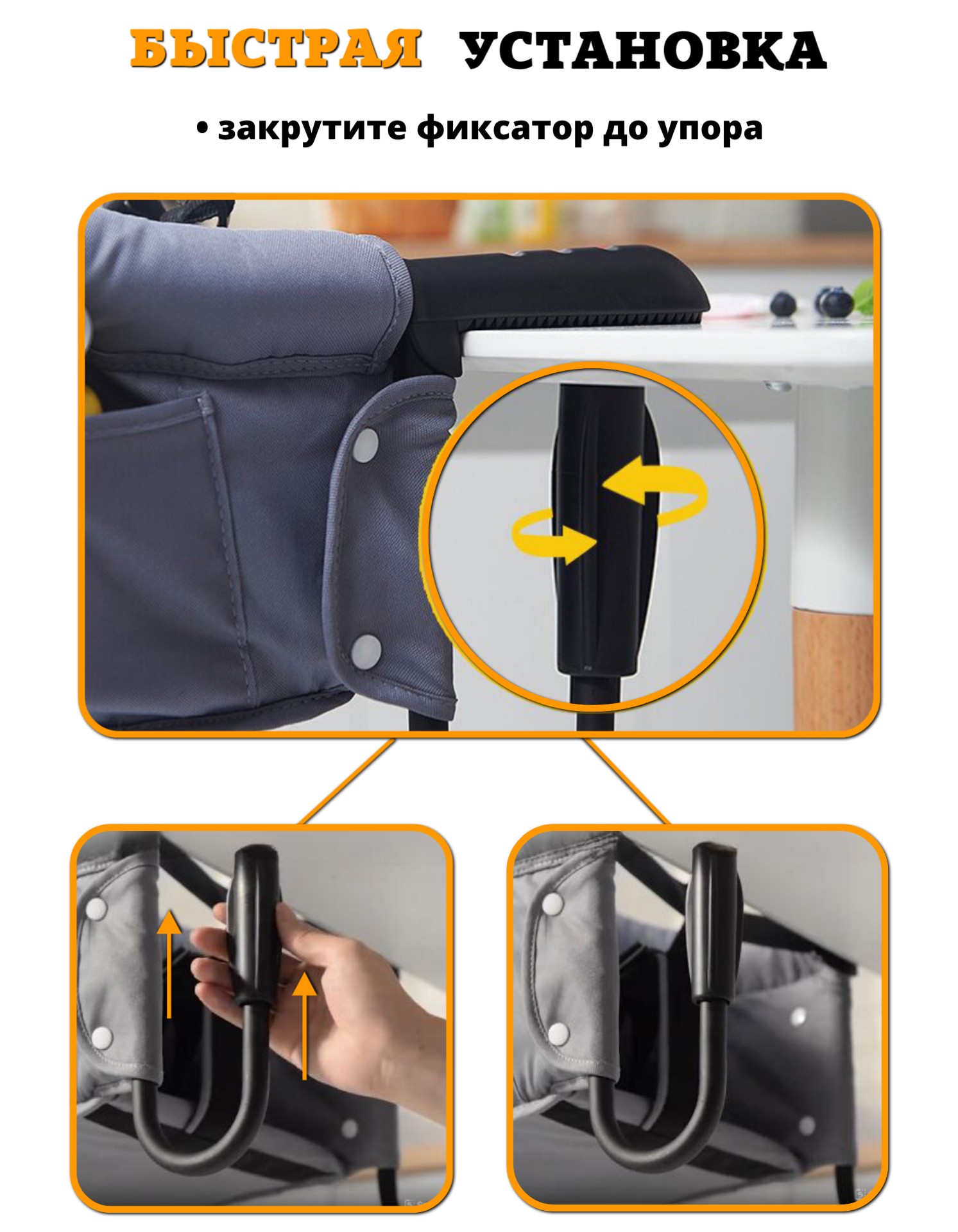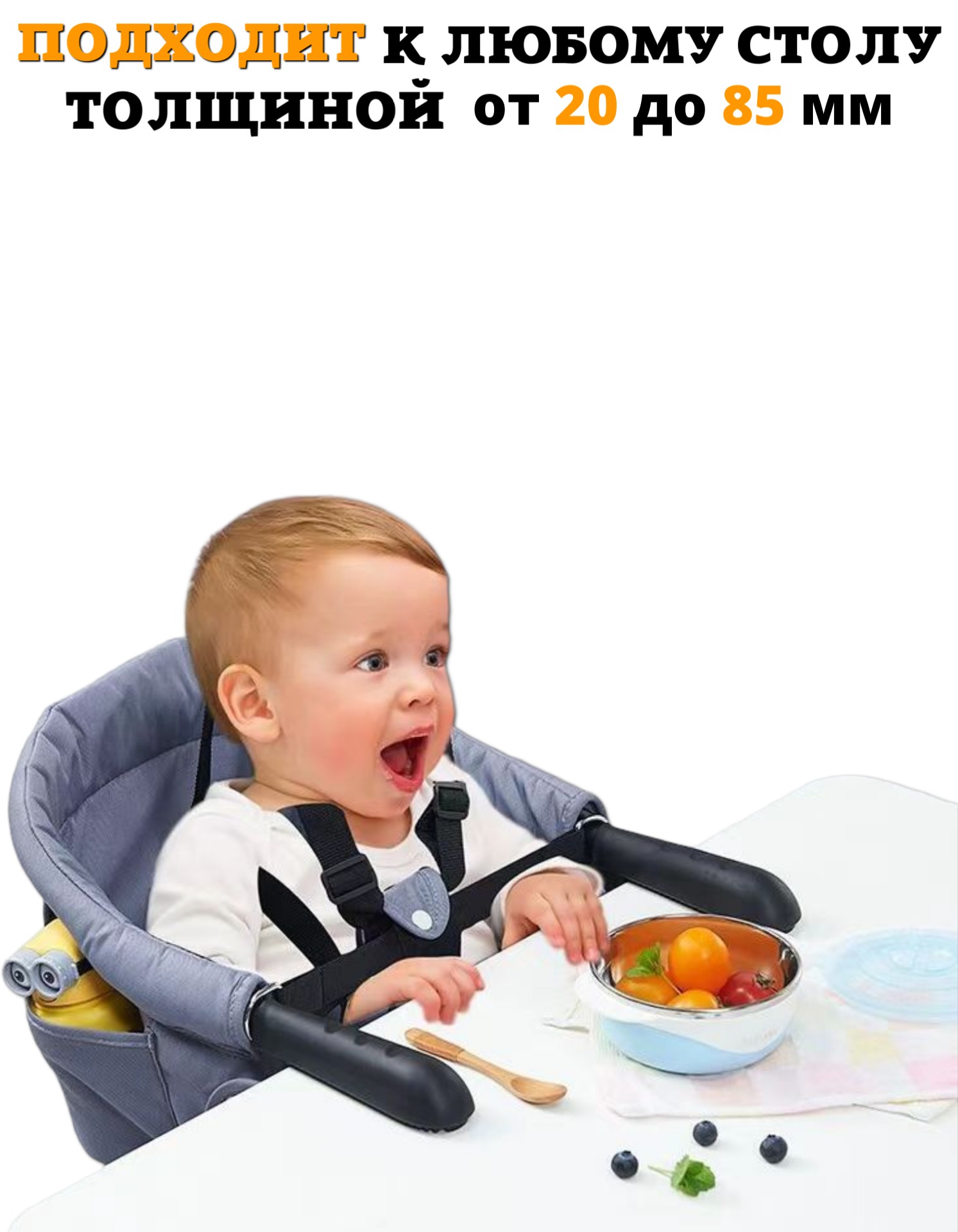 Стульчик можно прикрепить к любому столу толщиной от 20 до 85 мм