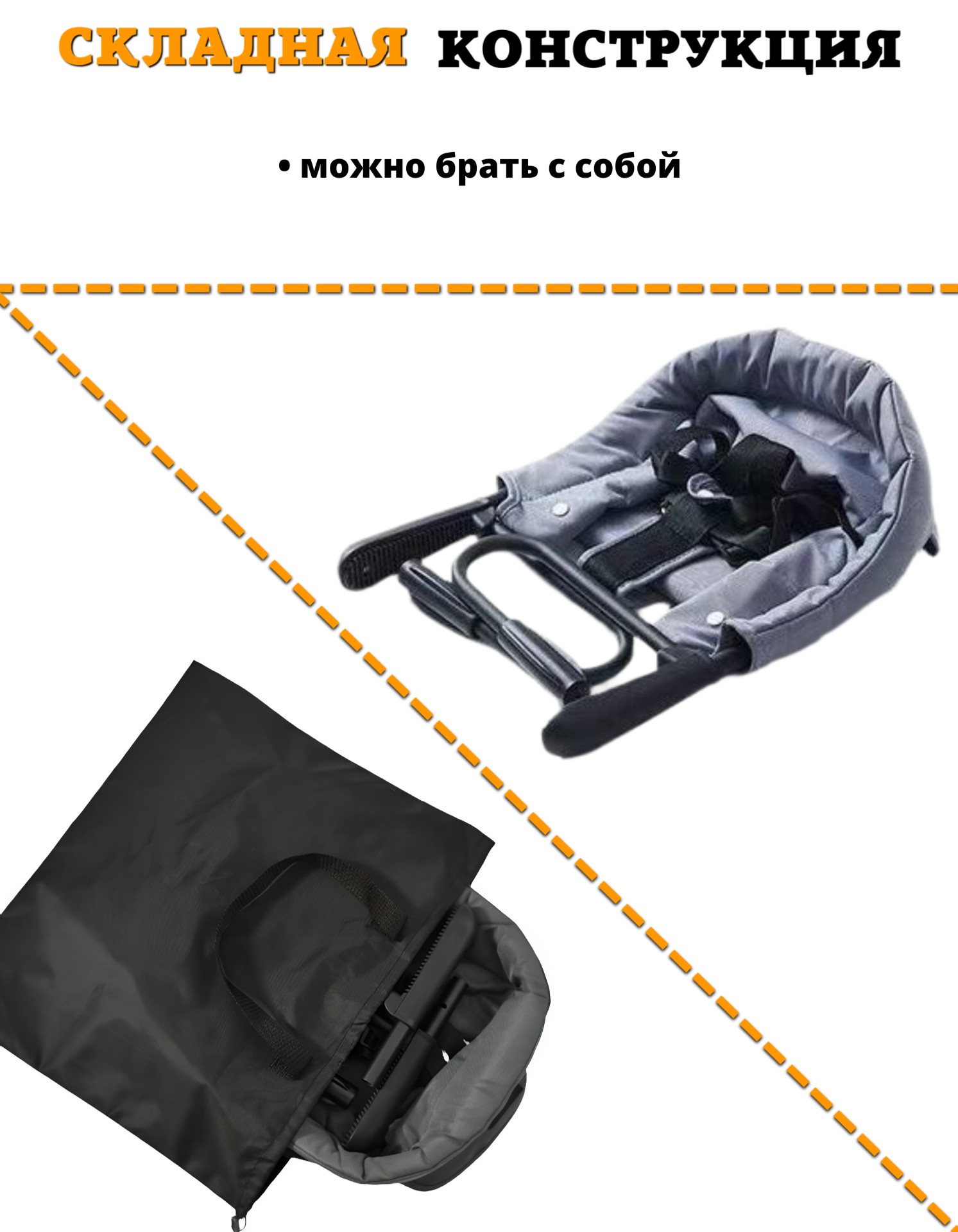 Приподнятая спинка и мягкое сиденье делают эту модель максимально комфортной для малыша. Переносной стульчик легко складывается, с ним можно ходить в гости или брать в дорогу. Съёмная ткань легко моется.