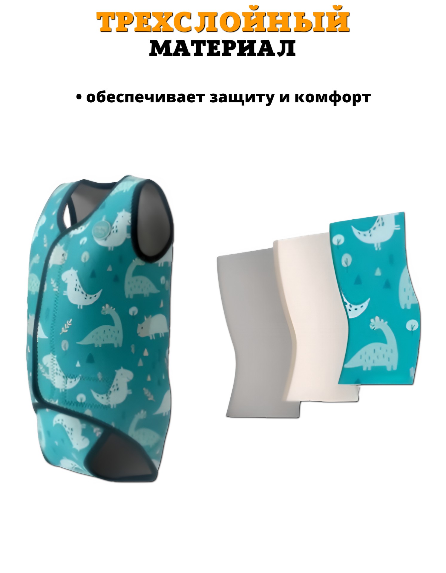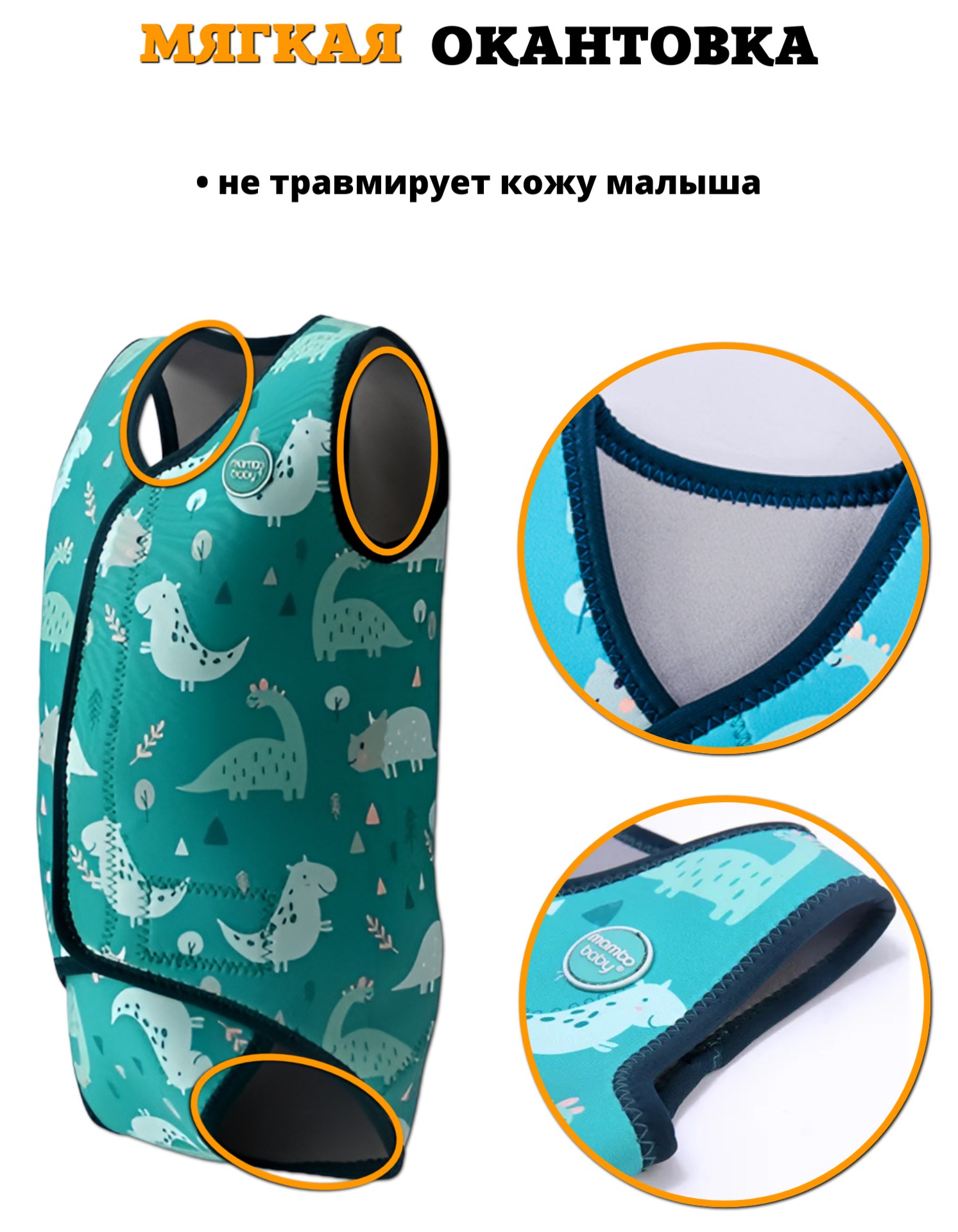 Термокостюм разработан с учетом всех безопасностей для вашего малыша, чтобы защитить его от солнца и согреть в воде.