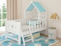 - Конструкция. Сэкономить место поможет кровать-чердак (кровать с рабочим местом). Внизу находится стол, сбоку – шкаф, а вверху – спальное место, куда нужно забираться по лестнице. Это удобный и компактный вариант. Однако он подойдет только тем детям, которые могут уверенно лазить по лестнице. Для двоих детей актуальны детские двухъярусные кровати от 3 лет с бортами.
